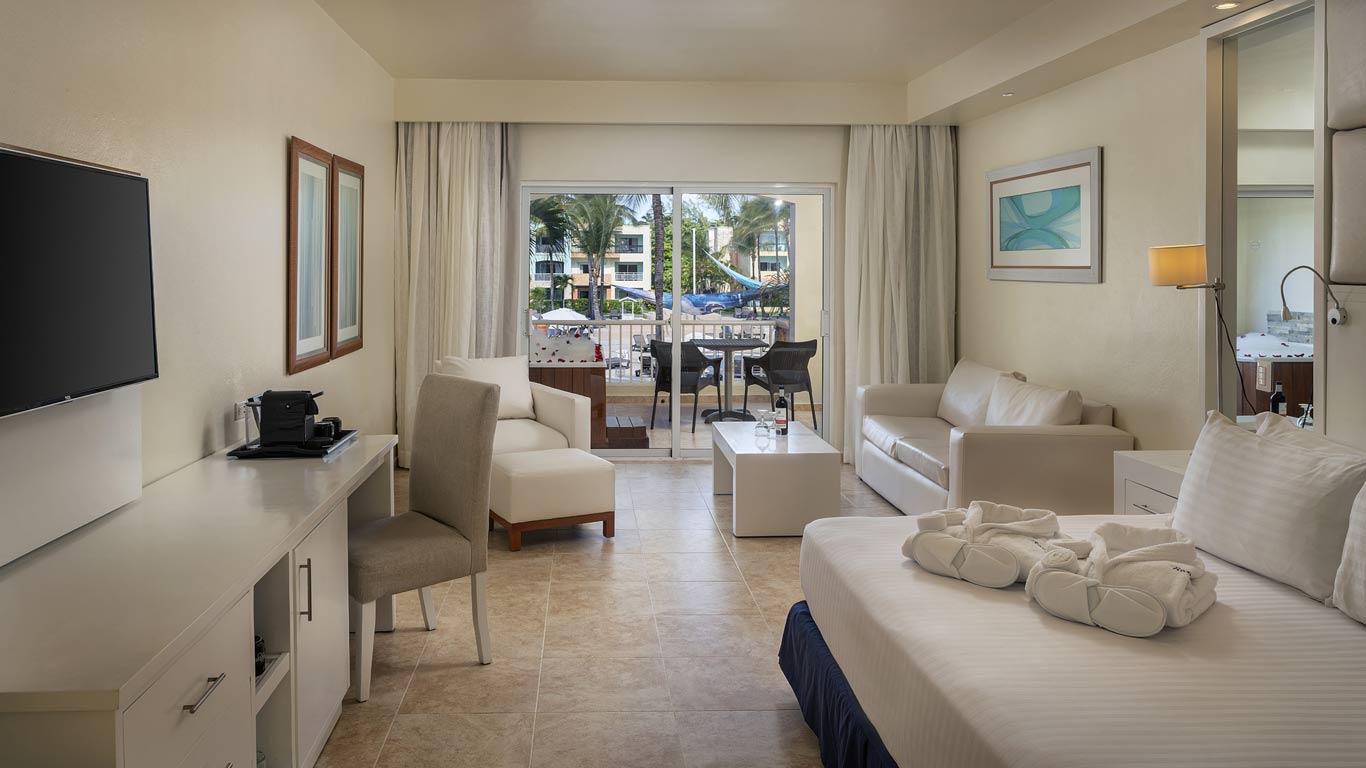 Las Superior Deluxe Junior Suites con Vista a la Piscina en Ocean Blue & Sand establecen el estándar de lujo frente al mar, combinando interiores espaciosos y elegantemente amueblados con vistas panorámicas al turquesa Mar Caribe. Cada habitación cuenta con un balcón o terraza privada, perfecto para tomar café por la mañana mientras sale el sol.