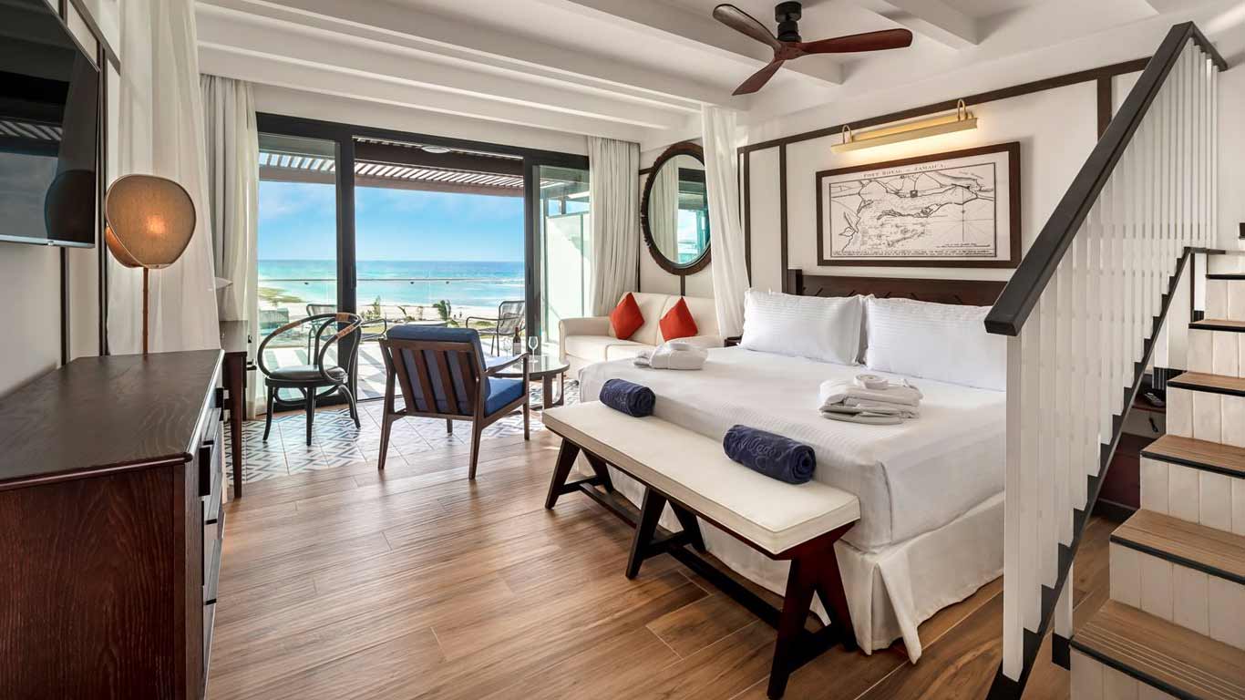 Las Swim Up Junior Suites en Ocean Coral Spring cuentan con terraza y acceso directo a la piscina. Disponen de dormitorio, sala de estar con sofá cama y baño con hidromasaje. Capacidad máxima de 3 personas.