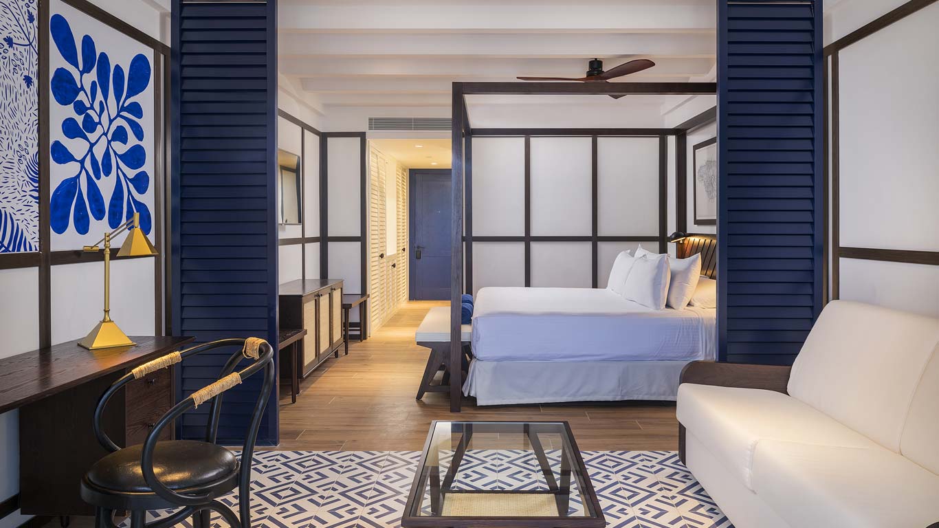 Las cómodas Junior Suites en Ocean Coral Spring cuentan con dormitorio, sala de estar con sofá cama, terraza y baño con hidromasaje.