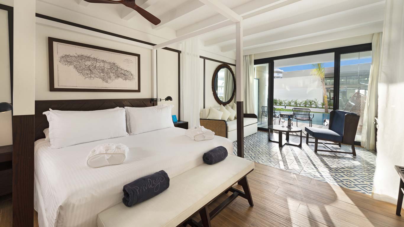 Las exclusivas Privilege Junior Suites en Ocean Coral Spring cuentan con dormitorio, sala de estar con sofá cama, terraza y baño con hidromasaje. Al reservar esta Junior Suite podrás disfrutar de todos los servicios Privilege. Capacidad máxima de 5 personas.